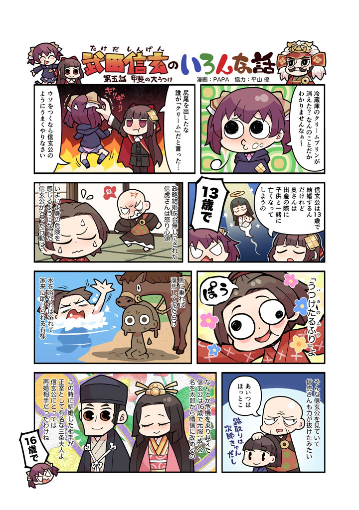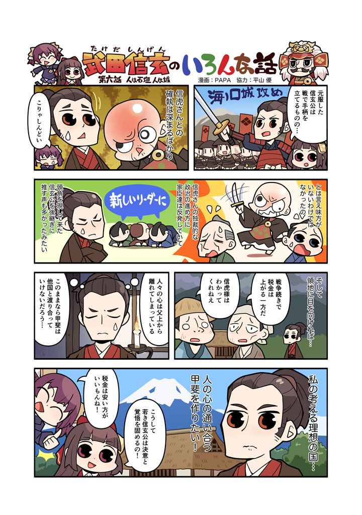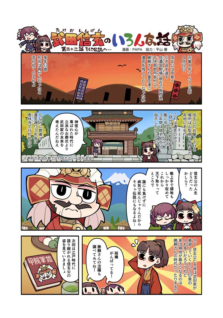 武田信玄公生誕500年。信玄公をマンガで紹介。令和3年4月より当所会報誌に連載しています。
