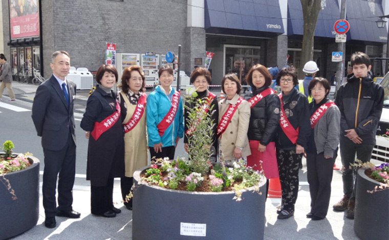 甲府商工会議所女性会による甲府駅前南口駅前広場への寄せ植え事業