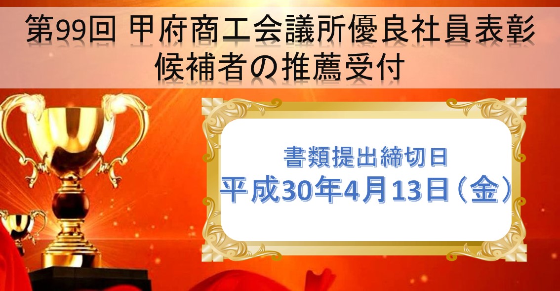 第99回甲府商工会議所優良社員表彰候補者の推薦受付のご案内