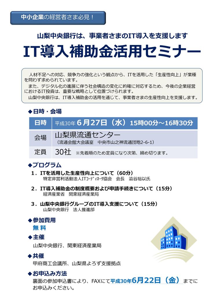 【山梨中央銀行】IT導入補助金活用セミナー(6/27開催)
