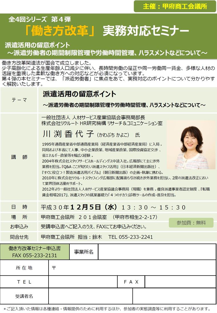 第4弾の本セミナーでは、「派遣労働者」に焦点をあて、実務対応のポイントについて分かりやす