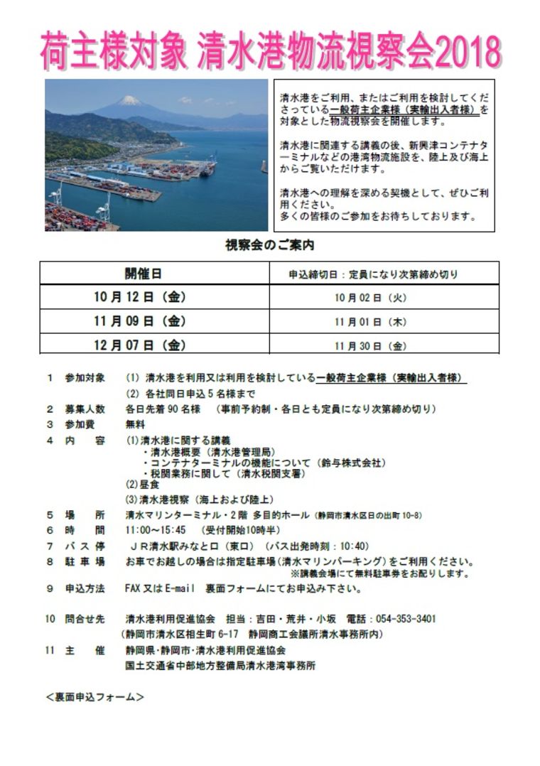 荷主様対象 清水港物流視察会2018 開催のご案内
