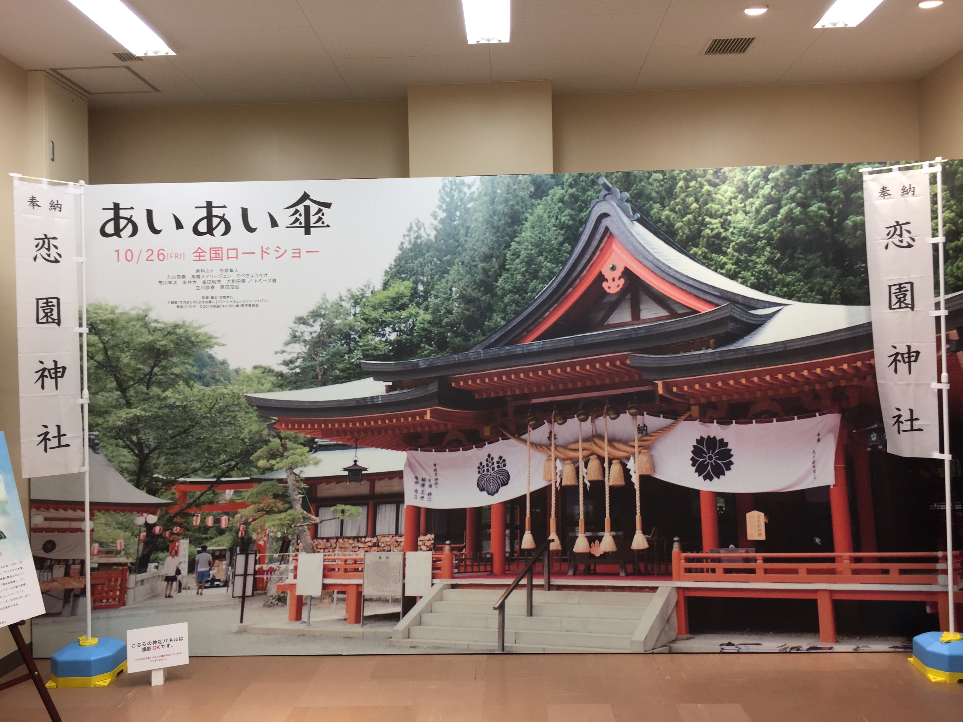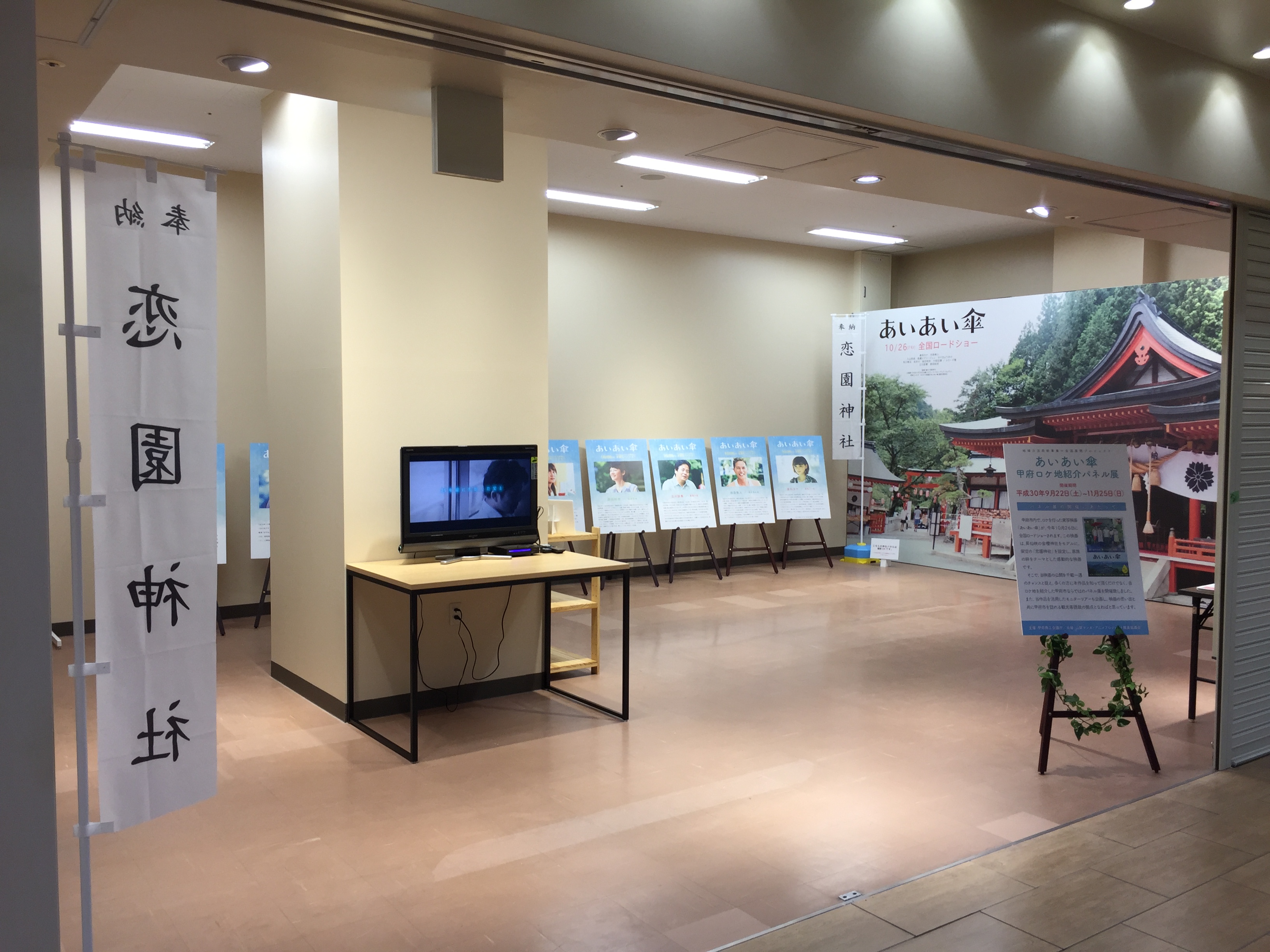 本パネル展では、実写版映画「あいあい傘」(10月26日全国ロードショー予定)の作品紹介やロケ地となった甲府市内のスポットをパネルやパンフレットを展示して紹介しています。
