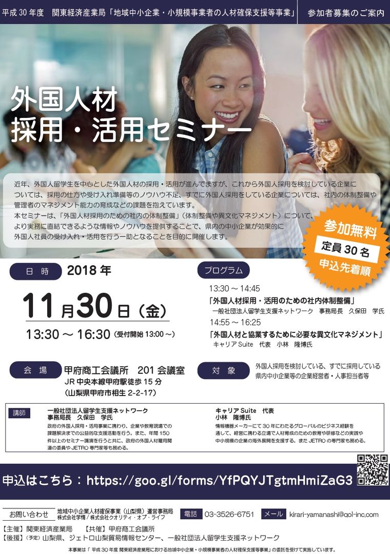 【11/30】外国人材採用・活用セミナー(主催:関東経済産業局)