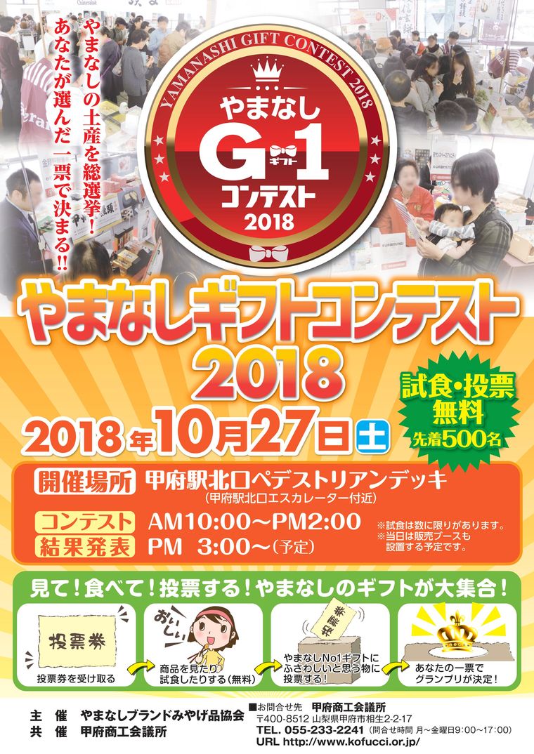 やまなしブランドみやげ品協会が主催する「やまなしギフトコンテスト2018」がに甲府駅北口ペデストリアンデッキにて開催されます!