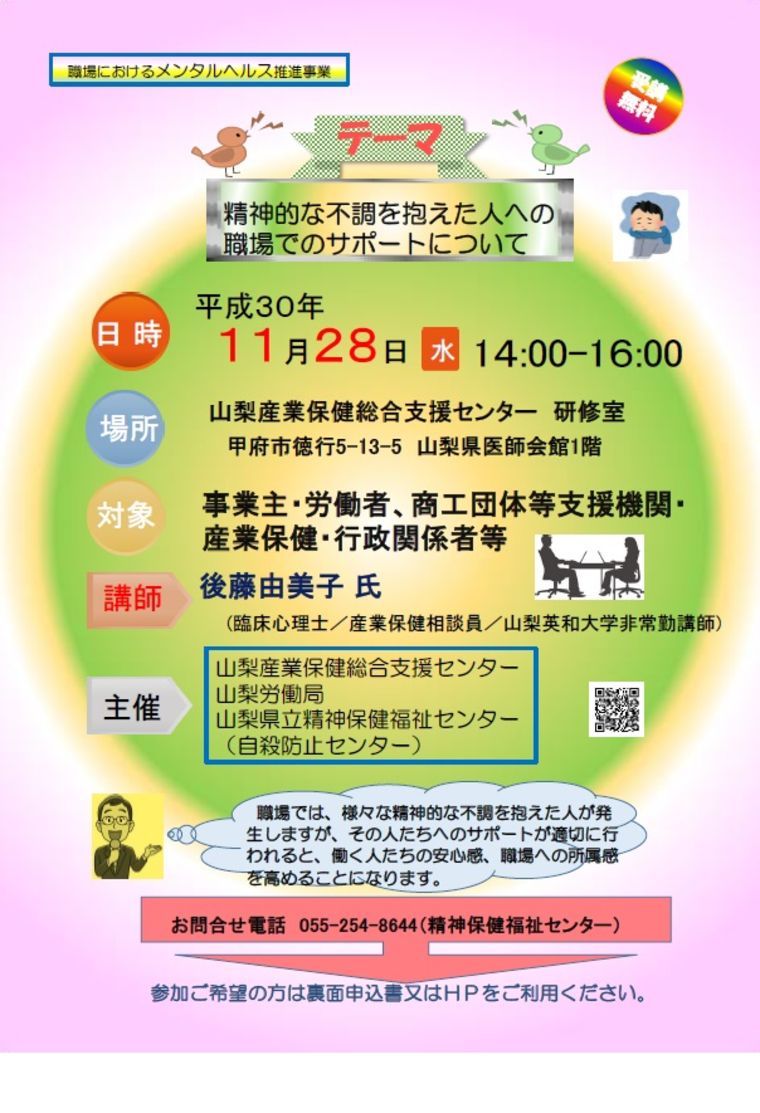3. 【山梨産業保険総合支援センター】セミナー「精神的な不調を抱えた人への職場でのサポートについて」開催のご案内