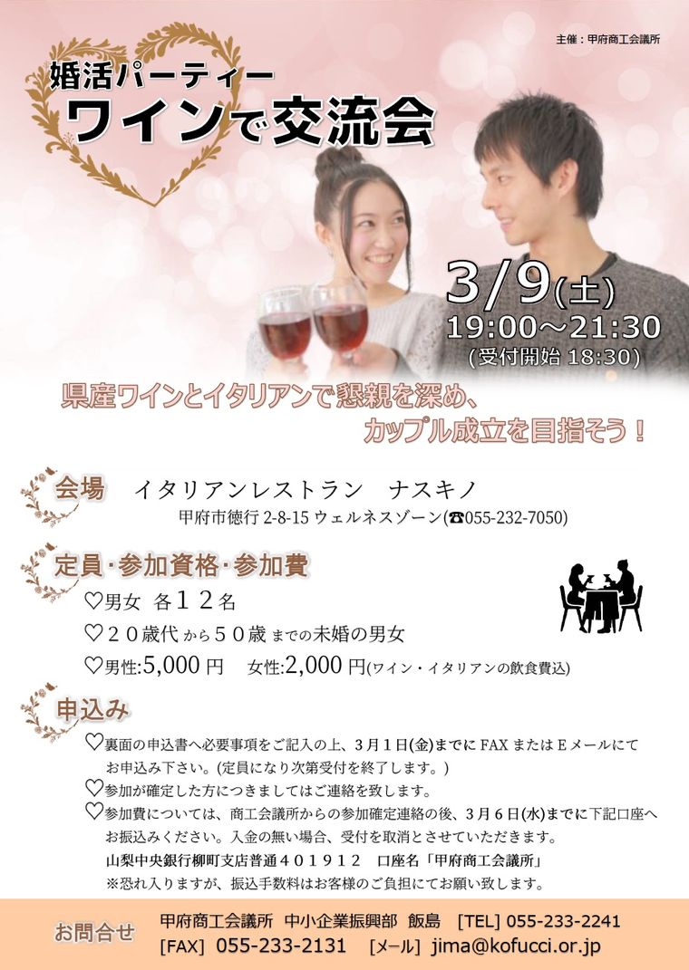 【3/9】婚活パーティー”ワインで交流会”開催のご案内