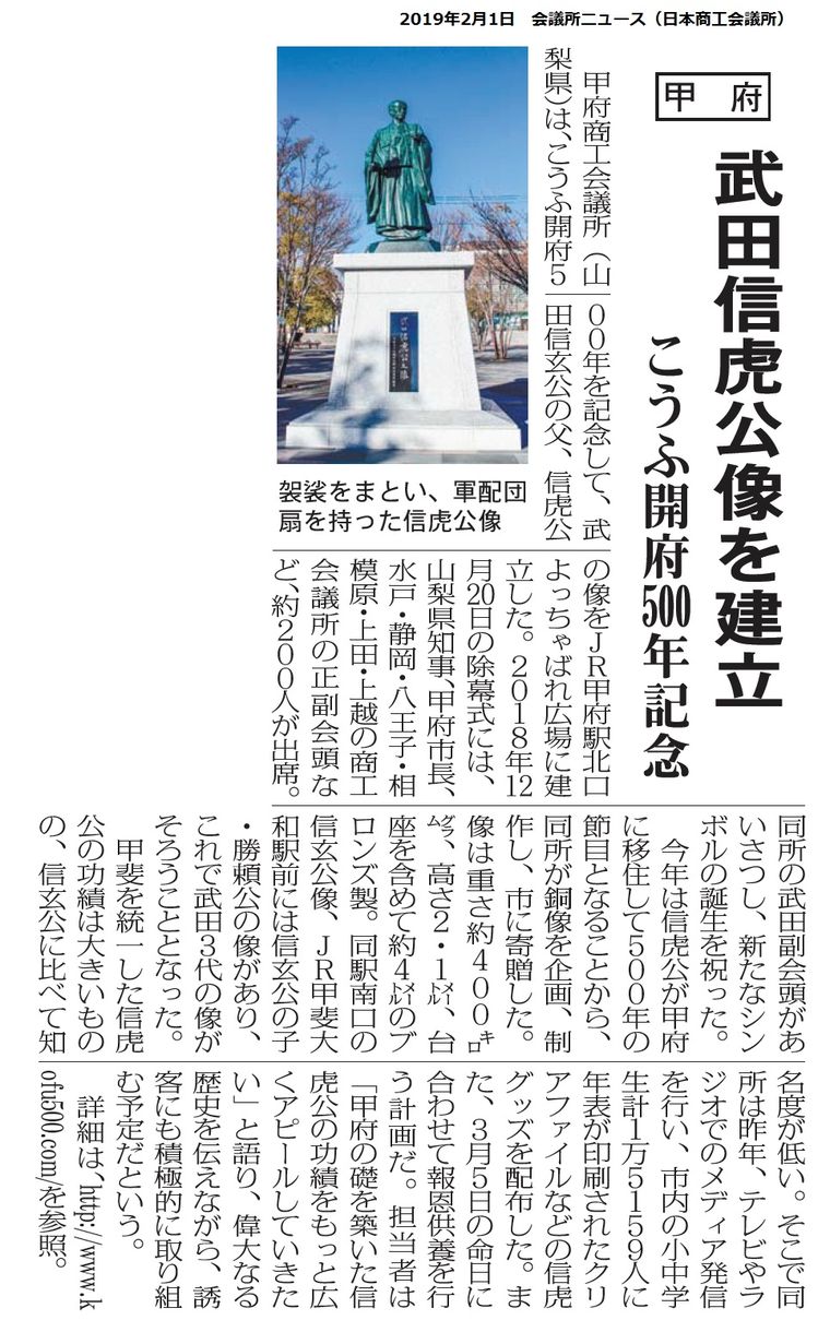3. 甲府開府500年記念事業が日本商工会議所発行の「会議所ニュース」に掲載されました。