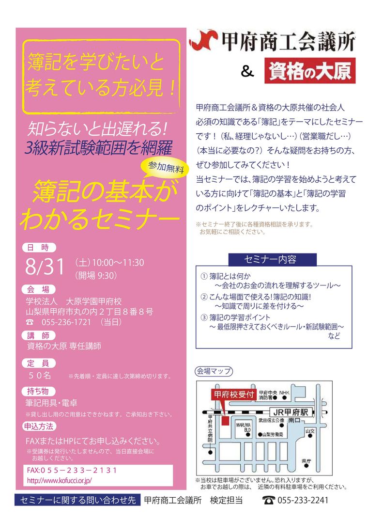 【8/31】「簿記の基本がわかるセミナー」のご案内