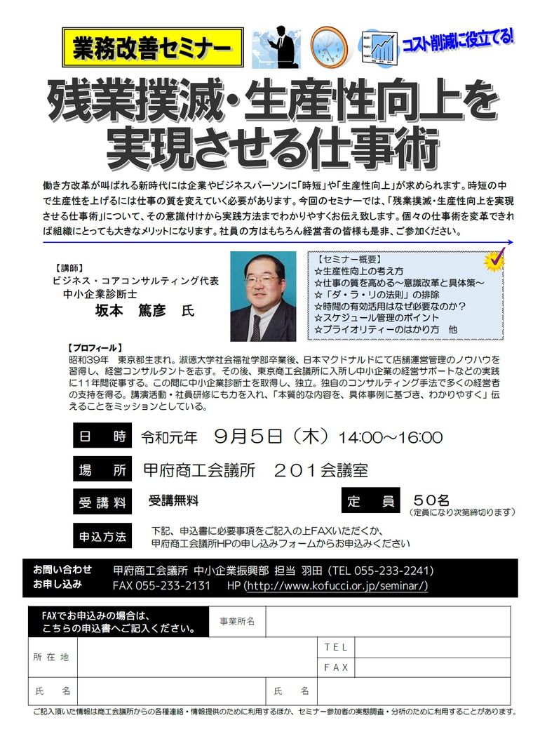 【9/5】セミナー「残業撲滅・生産性向上を実現させる仕事術」のご案内