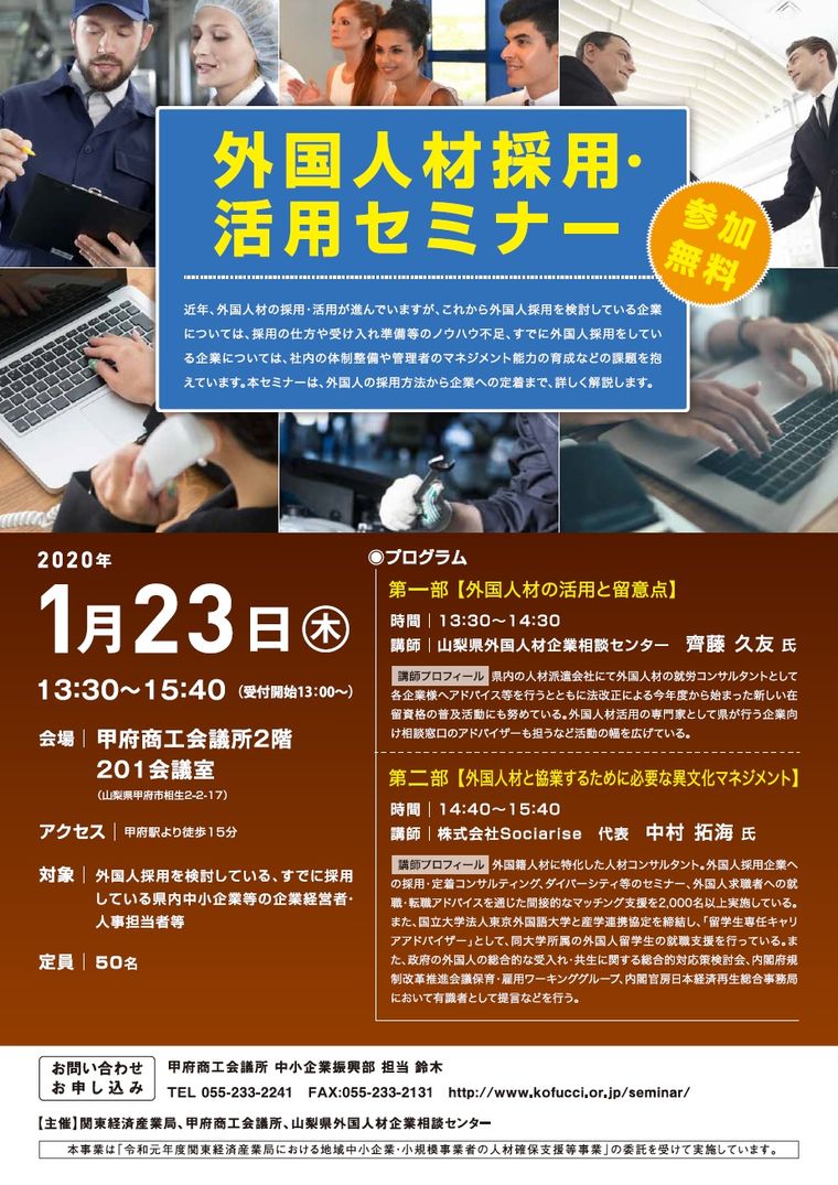 【1/23】「外国人材採用・活用セミナー」開催のご案内
