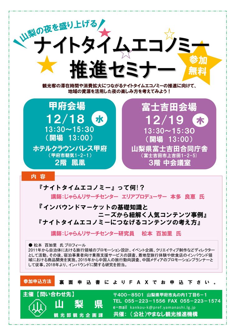 【山梨県】「ナイトタイムエコノミー推進セミナー」開催のお知らせ