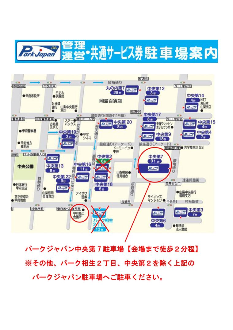※指定駐車場…地図上の○印「パークジャパン中央第7駐車場(約90台・徒歩2分)」