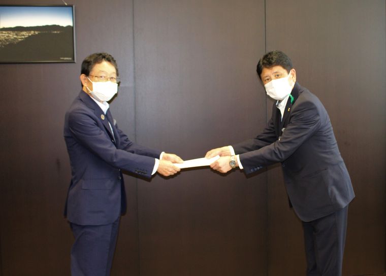 5月15日、甲府商工会議所 進藤 中 会頭は、新型コロナウイルスの感染拡大に伴う中小・小規模事業所への支援策の実施について、樋口 雄一 甲府市長へ要望を行いました。