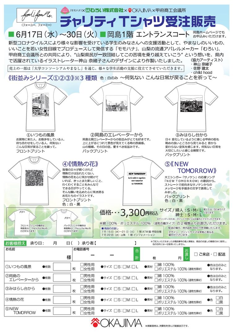 【学生支援事業】ForU,ForMe チャリティTシャツ受注販売
