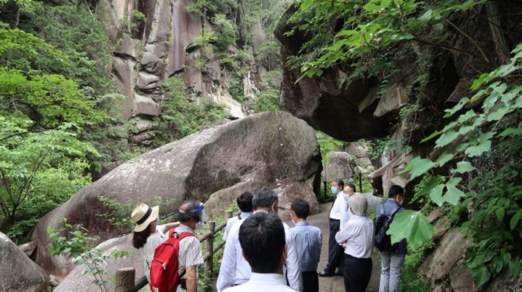 6月12日(金)、観光運輸部会議員・評議員合同懇談会では、今年3月に甲府市が策定した「昇仙峡リバイバルプラン」について理解を深め、所見を述べるため昇仙峡エリアの現地視察を行いました。当日は、昇仙峡マイスターである雨宮 洋一 氏(甲府市観光協会ボランティアガイド)にガイドを担当して頂き、参加者に分かりやすく昇仙峡の魅力を伝えてもらいました。参加者からは、「ロープーウェイに初めて乗り、昇仙峡の素晴らしさを再発見した。」や「リピーターを増やす取り組みや周知活動に注力した方が良い。」、「ダムなどを活用したアクティビティ要素を充実させた方が良い」など様々な意見が出ました。