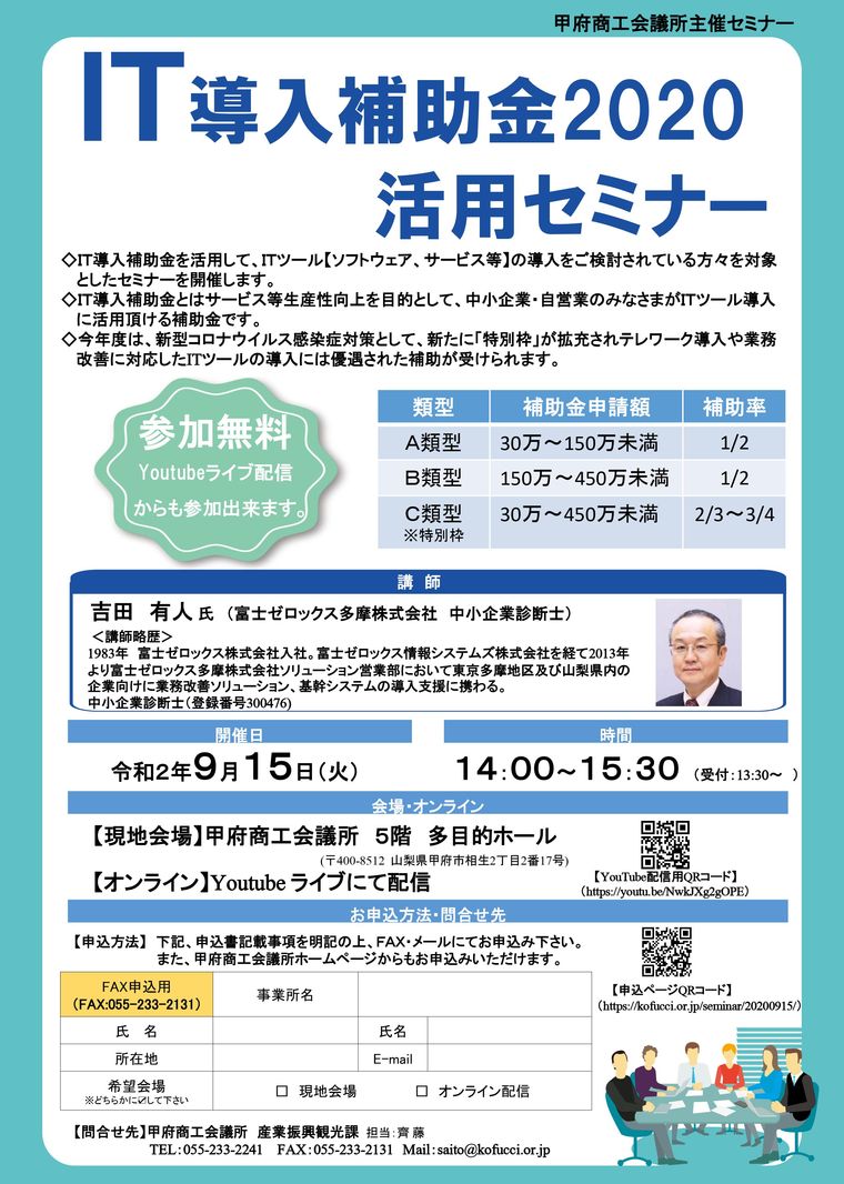 【9/15】「IT導入補助金2020活用セミナー」開催のご案内
