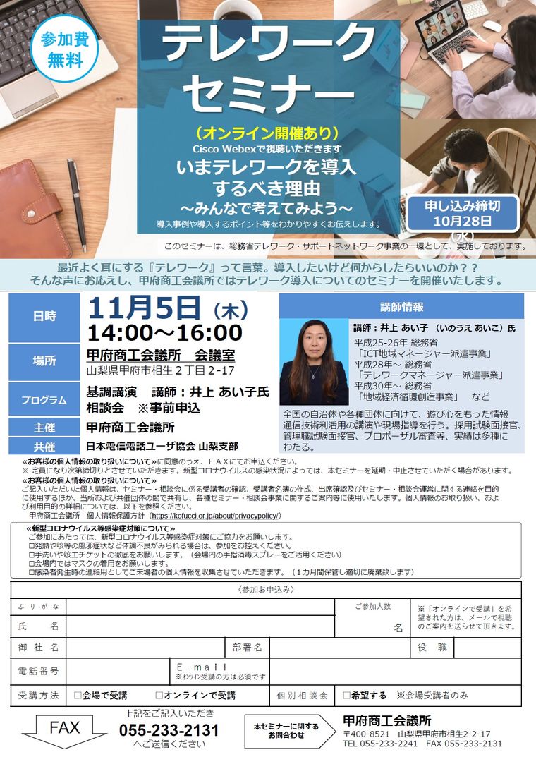 【11/5】テレワークセミナー(Web聴講有)の開催について