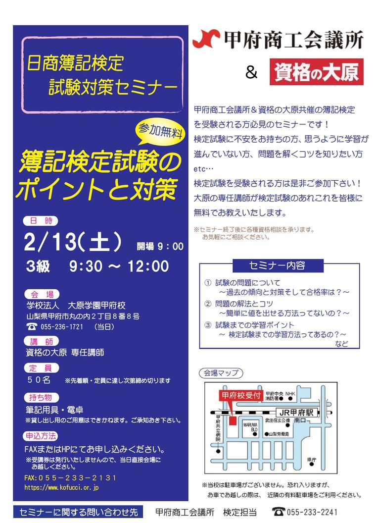 日商簿記検定試験対策セミナー(3級)