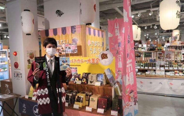 2021年3月9日~22日の期間限定で東京・秋葉原にある「日本百貨店しょくひんかん」においてテストマーケティング・B to Cの販路開拓に最適な「全国から毎週集まる!!地域うまいもんマルシェ」へ商品を出品しました。 今回は、山梨の特産を取り入れた”ご当地レトルトカレー”や白桃を贅沢に使った"白桃シラップ漬け"、地域の名産"甲州小梅"を販売しました。商品も昨年度よりも売上額が増え、多くの方に手に取って頂くことができました。引き続き、山梨県のお土産の魅力を発信していきたいと思います。