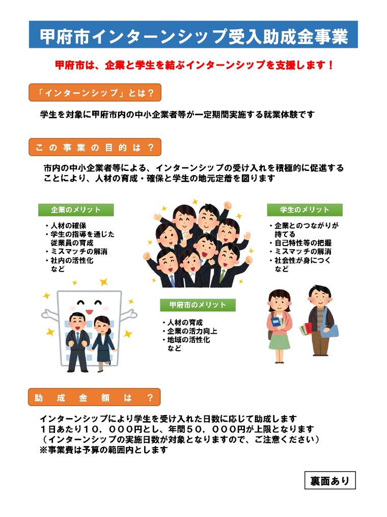 【甲府市】甲府市インターンシップ受入助成金事業について