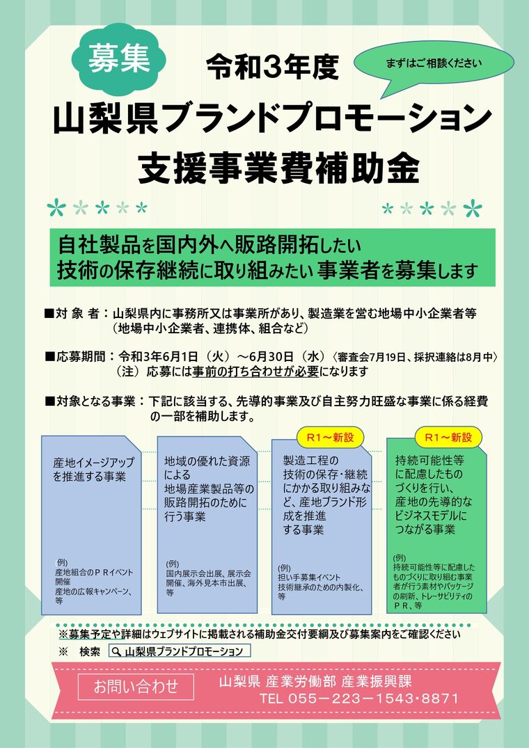 【山梨県】ブランドプロモーション支援事業費補助金の募集(令和3年度第2回)について
