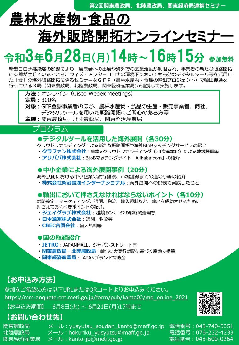 【関東農政局等】農林水産物・食品の海外販路開拓オンラインセミナー開催(6/28)のお知らせ