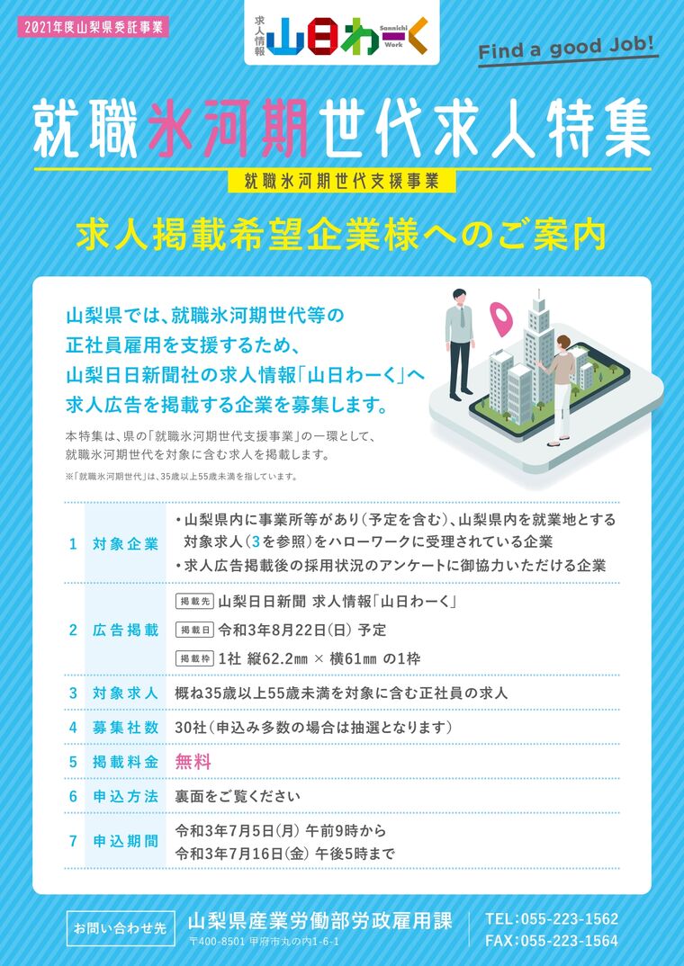 【山梨県】就職氷河期世代等に向けた求人広告掲載企業募集について