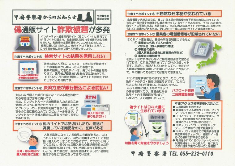 【甲府警察署】偽通販サイト詐欺被害が多発!【ご注意ください】