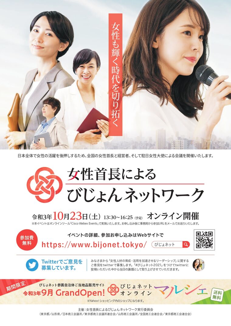 この度、女性の力を最大限発揮できる社会の実現を目指して、行政と経済界とが手を携えて地域の活性化を図ることを目的として、全国の女性首長と経営者による会議「女性首長によるびじょんネットワーク」を開催されます。