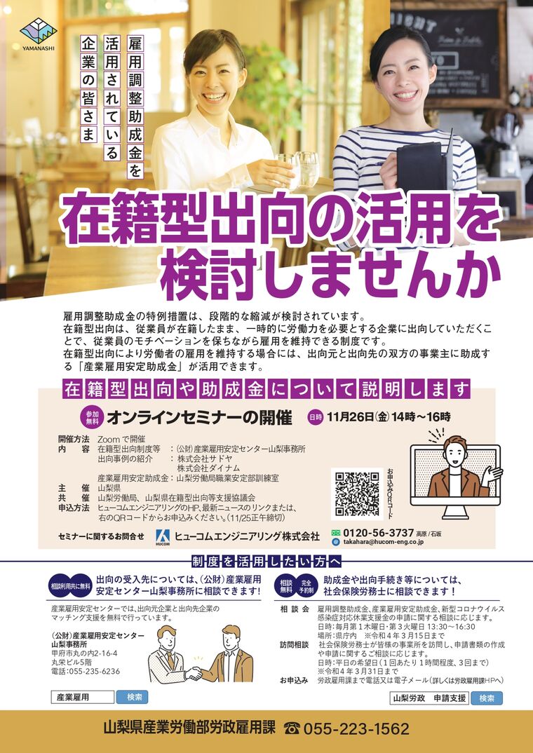 【山梨県】在籍型出向活用のオンラインセミナーのご案内