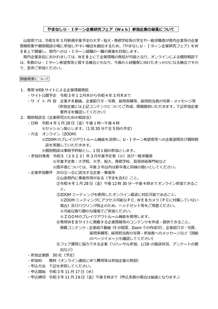 【山梨県】やまなしU・Iターン企業研究フェア(Web)参加企業募集について
