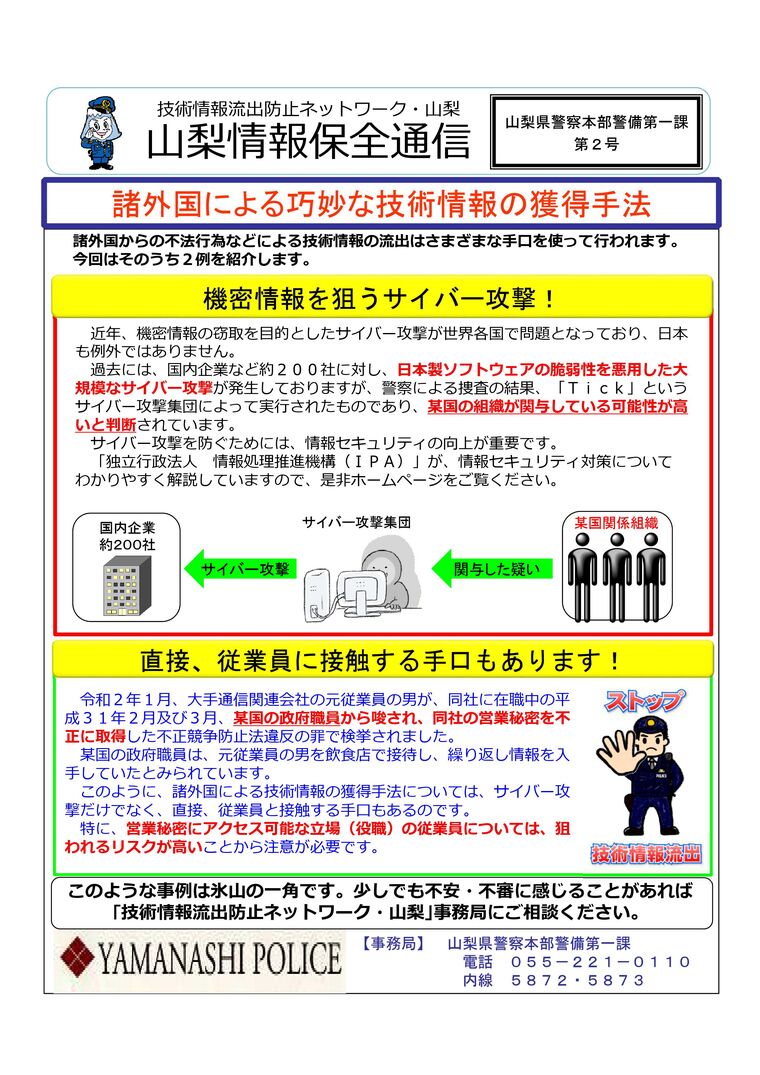 【山梨県警】山梨情報保全通信第2号の発出について
