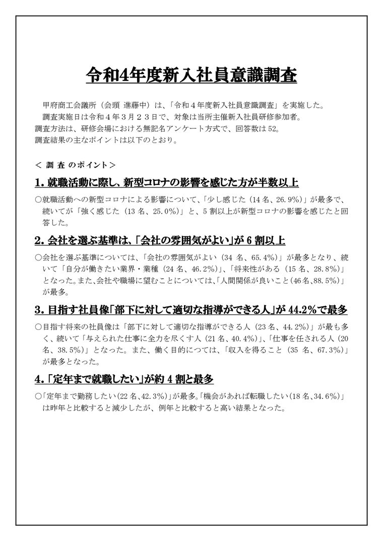 3. 「令和4年度新入社員意識調査」調査結果概要の掲載について