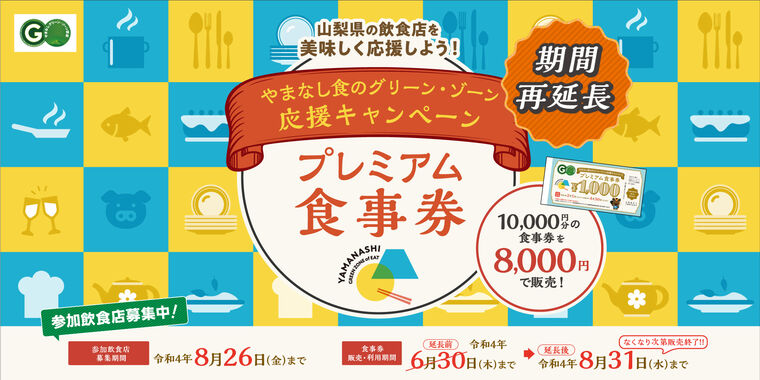 「やまなし食のグリーン・ゾーン応援キャンペーン プレミアム食事券」の販売・利用期間の再延長について