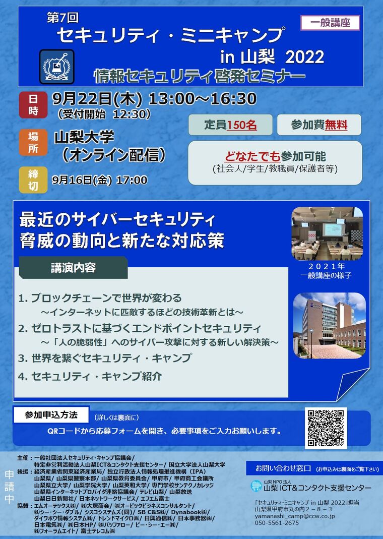 【山梨ICT&コンタクト支援センター】セキュリティ・ミニキャンプin山梨2022 のご案内