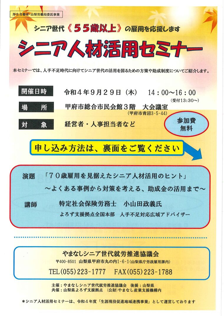 3. 【やまなしシニア世代就労推進協議会】シニア人材活用セミナー開催のご案内