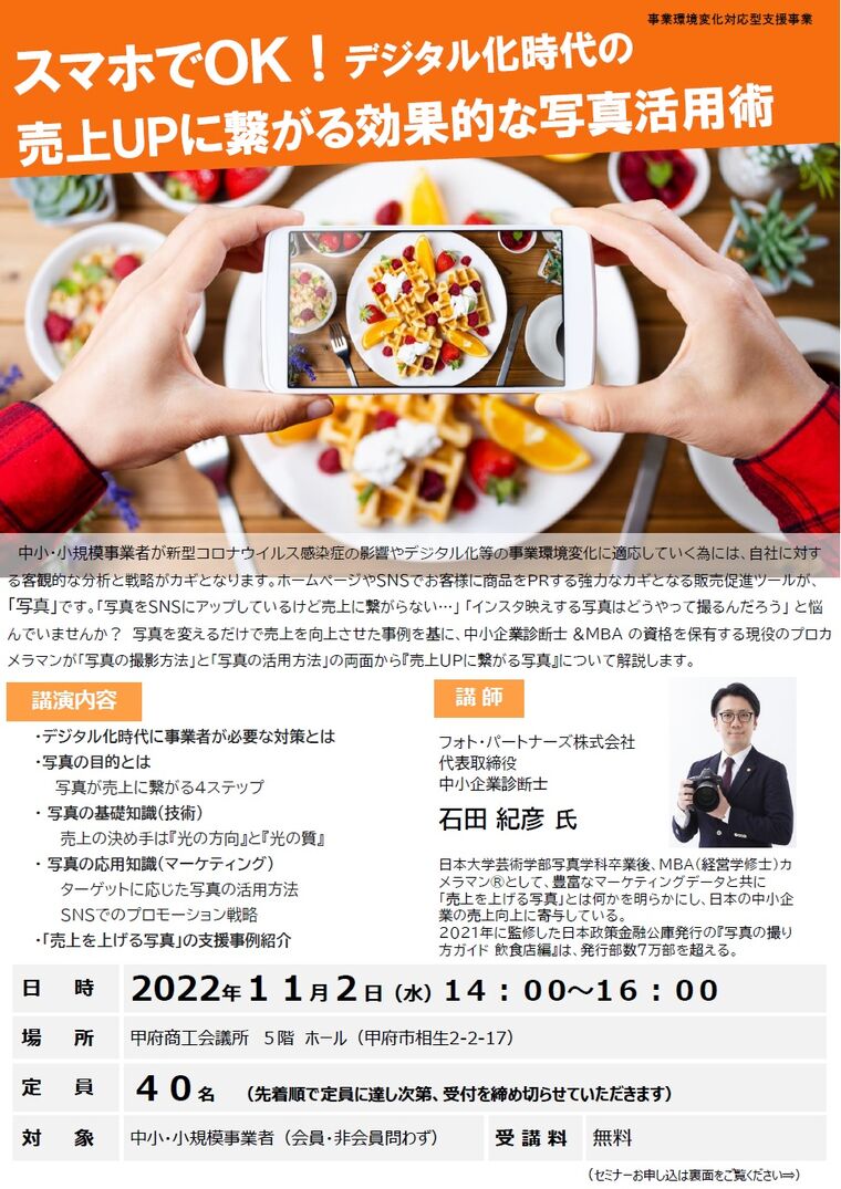 残席わずか!【11/2】スマホでOK!デジタル化時代の売上UPに繋がる効果的な写真活用術