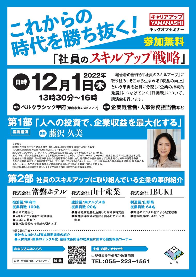 3. 【山梨県】セミナー「これからの時代を勝ち抜く!社員のスキルアップ戦略」(12/1開催)