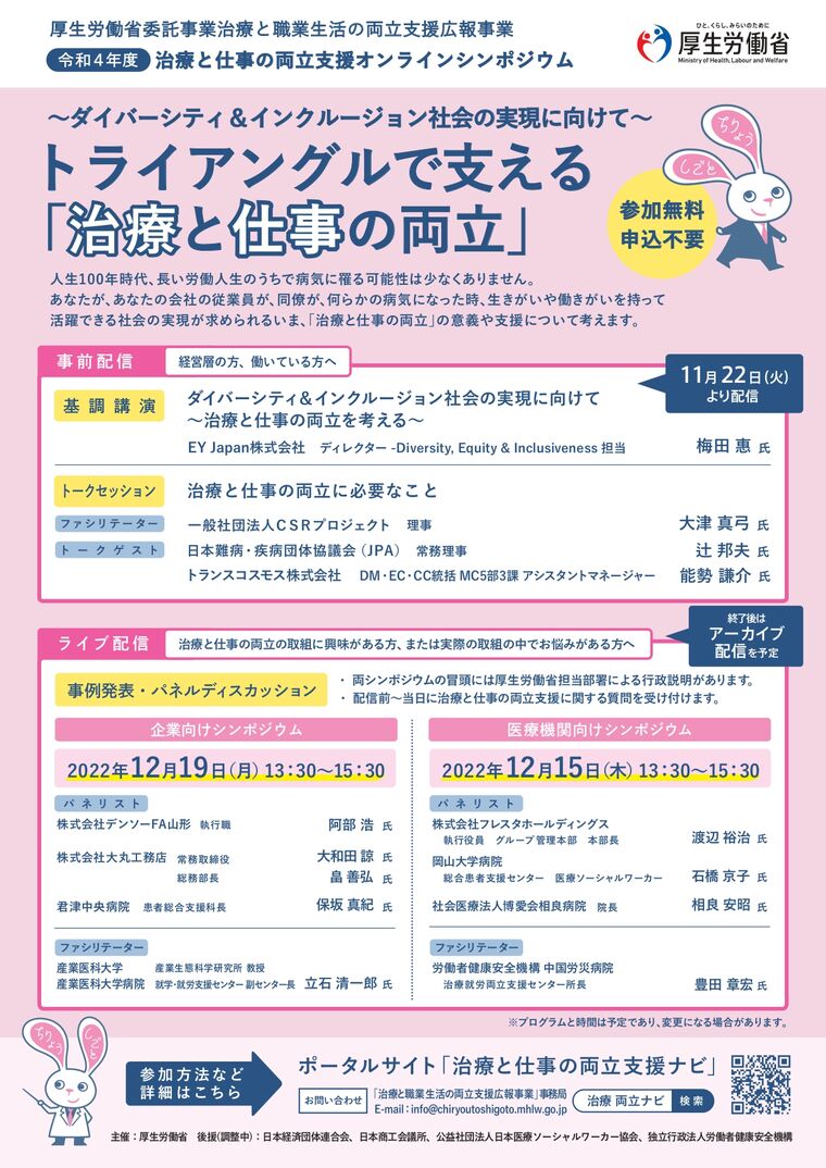【山梨労働局】令和4年度「治療と仕事の両立支援シンポジウム」の開催について