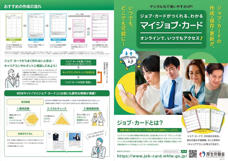 厚生労働省は、ジョブ・カードをオンラインで登録、更新できる新サイト「マイジョブ・カード」を令和4年10月26日(水)より稼働開始しましたのでお知らせいたします。