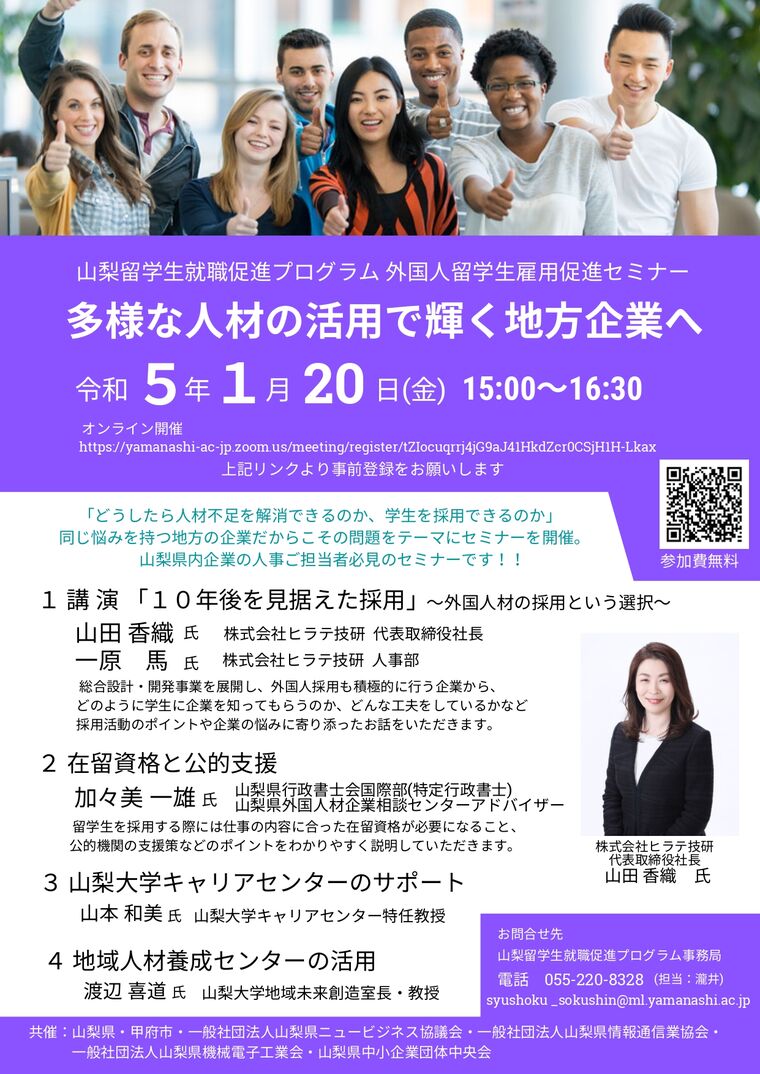 【山梨留学生就職促進プログラム事務局】外国人留学生雇用促進セミナーのご案内