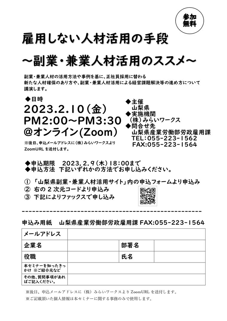 【山梨県】「副業・兼業人材活用オンラインセミナー」のご案内