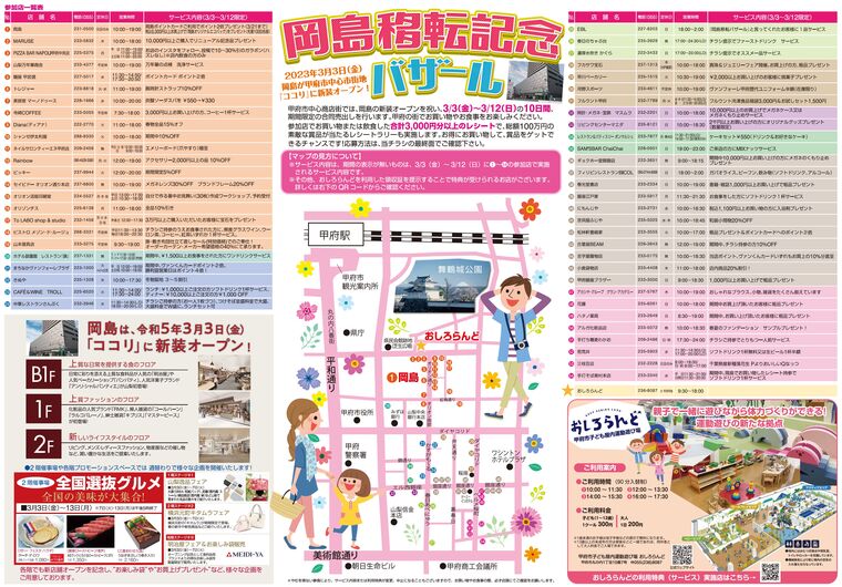 岡島百貨店は2023年3月3日(金) 甲府市中心市街地「ココリ」に新装オープン致します。