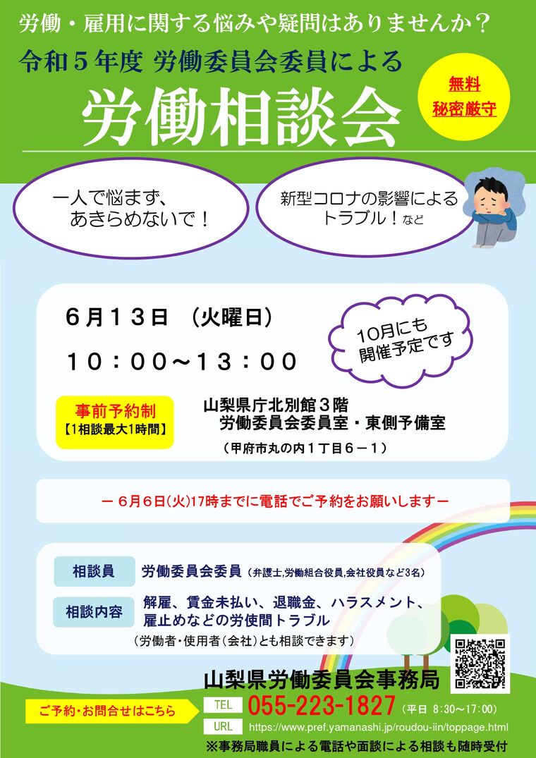 【山梨県】山梨県労働委員会委員による「労働相談会」を開催します!
