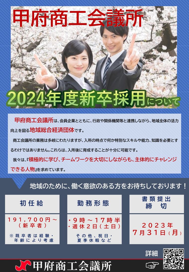 甲府商工会議所では、職員採用を行います。詳細は、甲府商工会議所職員採用のご案内ページをご確認ください。
