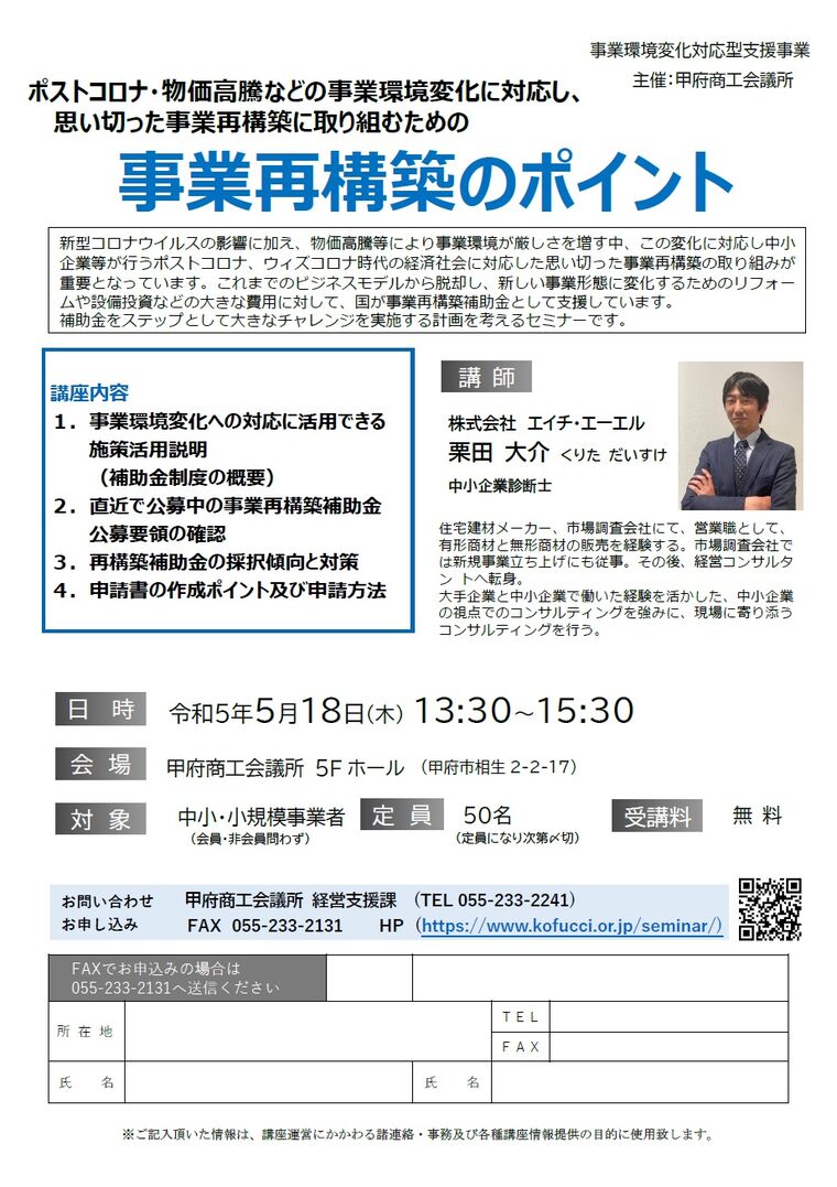 【5/18】「事業再構築のポイント」セミナー開催について