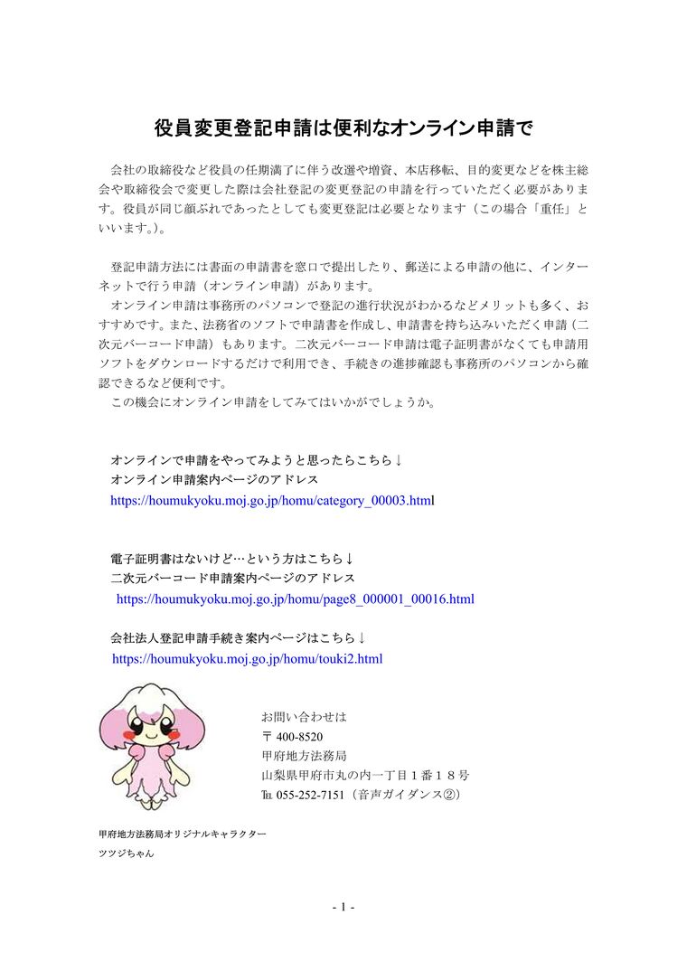 【甲府地方法務局】役員変更登記申請は便利なオンライン申請で!