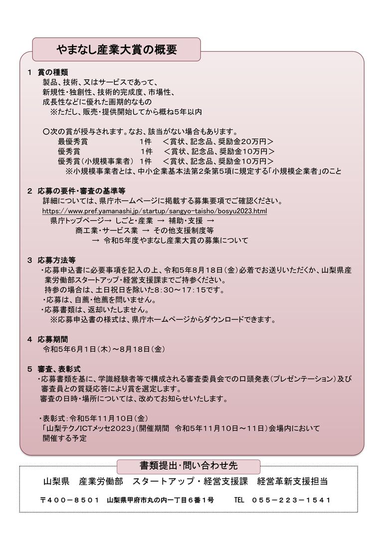 【山梨県】令和5年度やまなし産業大賞の募集について
