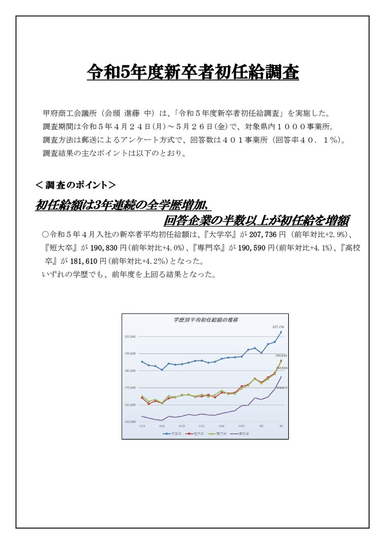 3. 令和5年度初任給調査結果概要の掲載について